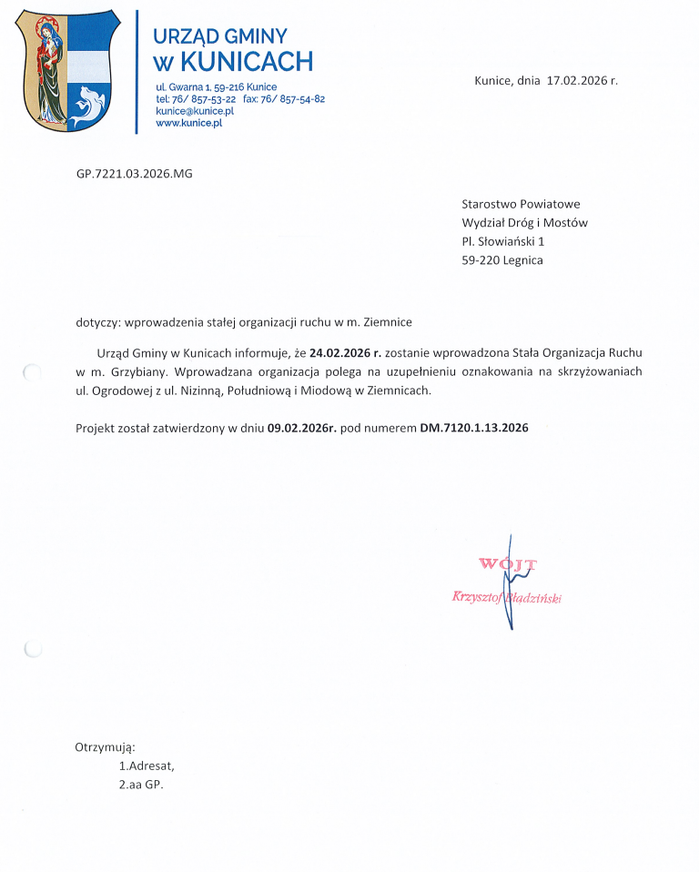 13:02 - 18.2.2026 Kategoria: 1. Aktualności, 2026 Interpelacje, 4. Działalność Radnego, 4.1 Interpelacje i zgłoszenia Możliwość komentowania Uzupełnienie znaków w Ziemnicach została wyłączona