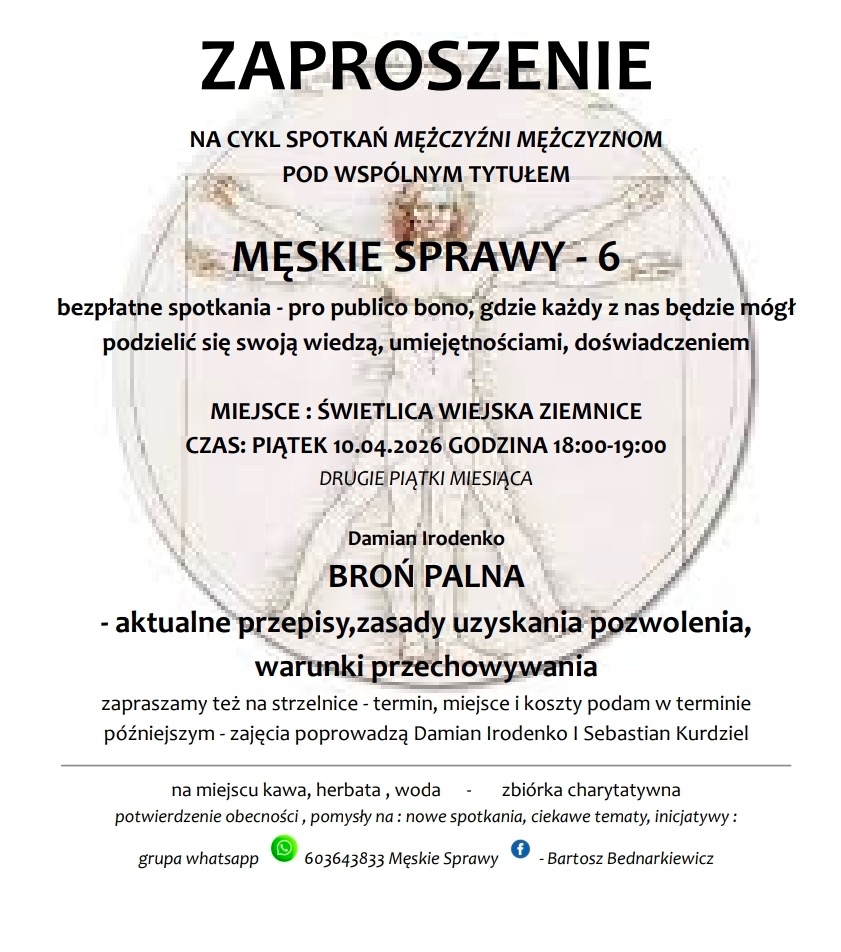 09:04 - 01.4.2026 Kategoria: 1. Aktualności, 3. Integracja Mieszkańców, 3.1 Męskie Sprawy Możliwość komentowania Męskie Sprawy – vol.6 została wyłączona