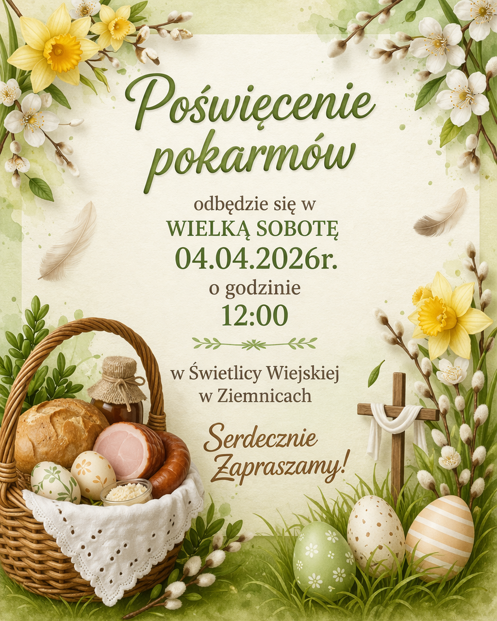 09:04 - 02.4.2026 Kategoria: 1. Aktualności, 3. Integracja Mieszkańców Możliwość komentowania Poświęcenie pokarmów 04.04.2026 została wyłączona