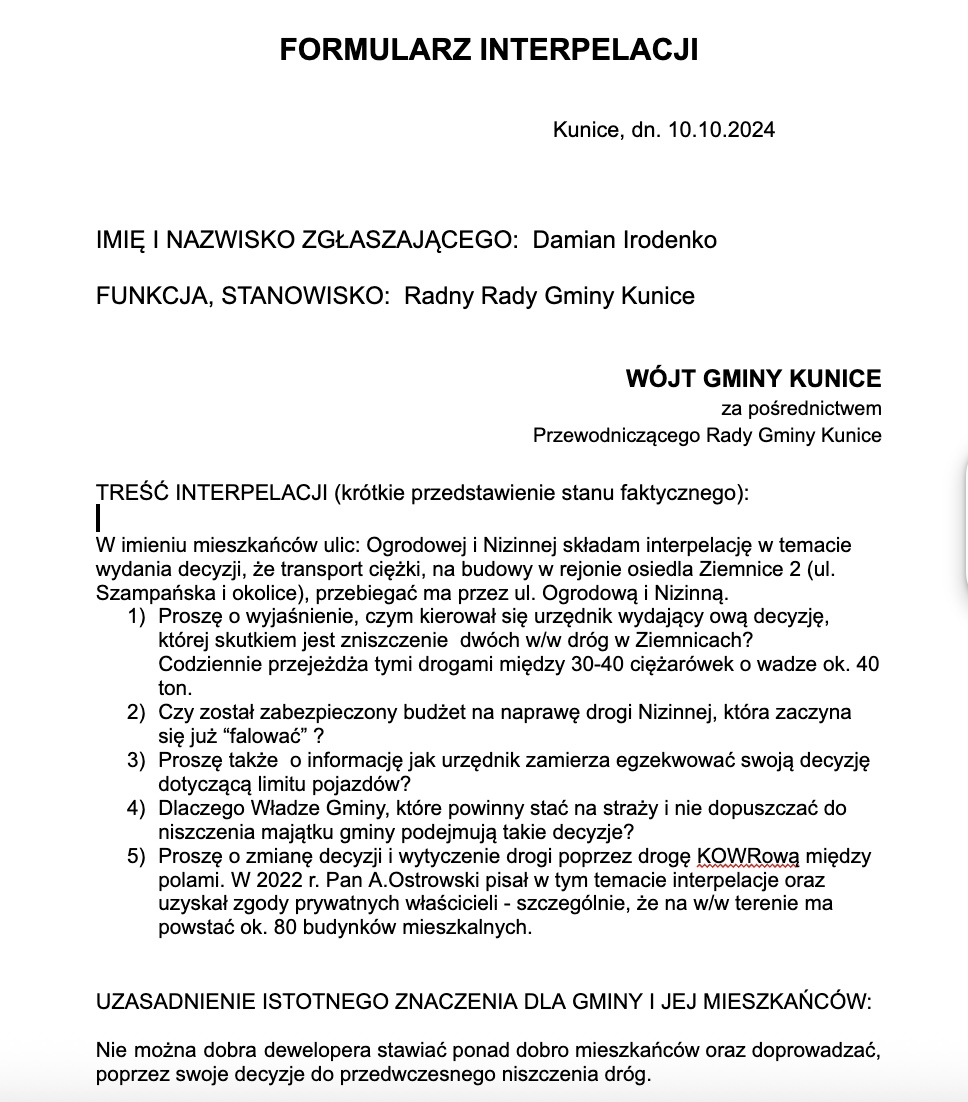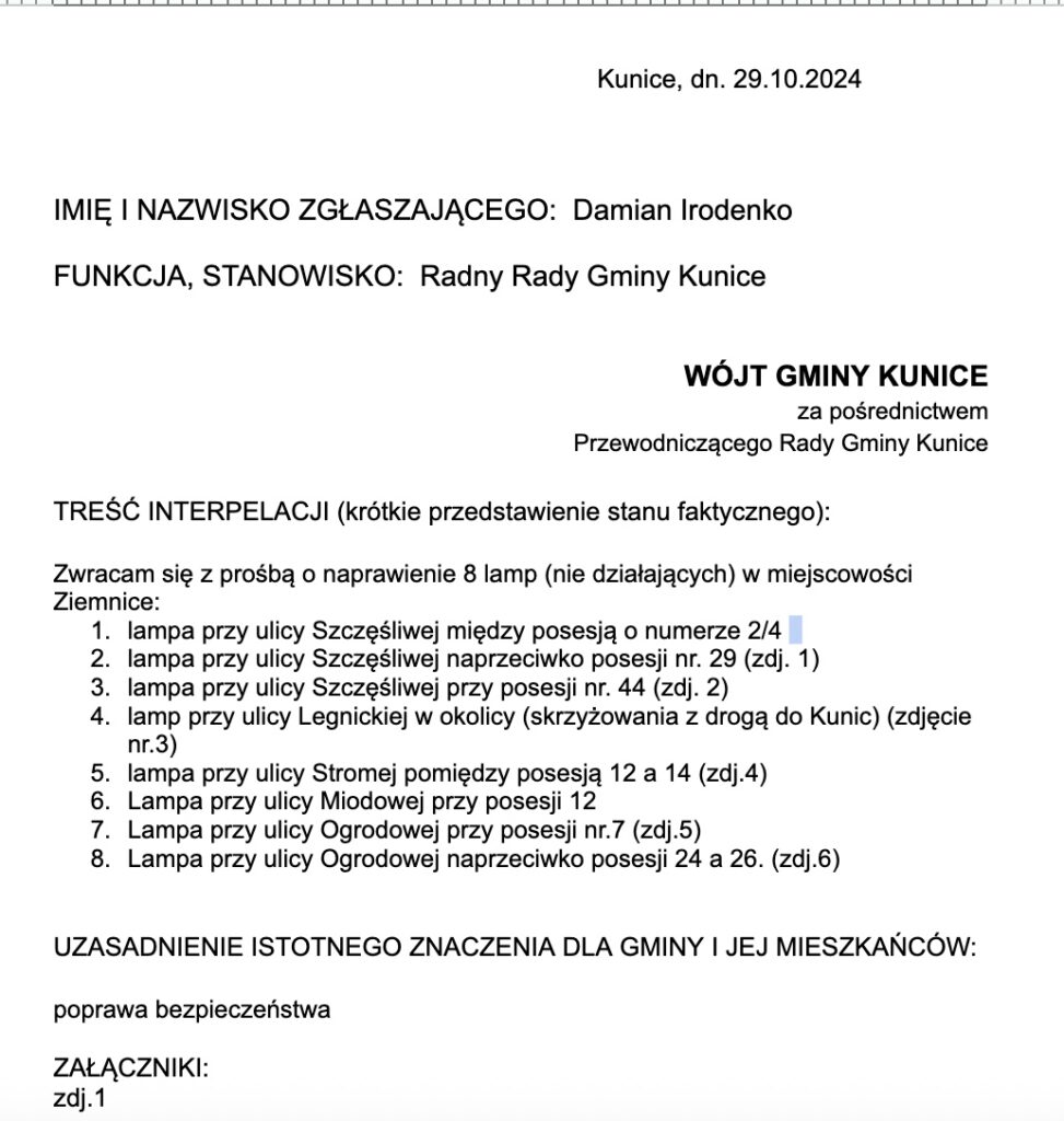 Opublikowane przez admin 2024 23:10 - 10.10.2024 Kategoria: 2024 Interpelacje, 4. Działalność RadnegoMożliwość komentowania Interpelacja nr. 7 z dnia 10.10.2024 została wyłączona